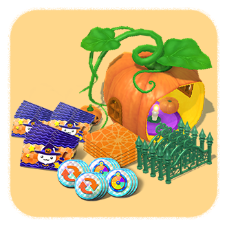 このおとくパックに含まれている「巨大かぼちゃの家」のかざりを島に置くと、にゃんこ達が特別な動きで遊んでくれます。「巨大かぼちゃの家」は、「まるっとハロウィンおとくパック」でのみ入手することができますので、ぜひチェックしてみてください。