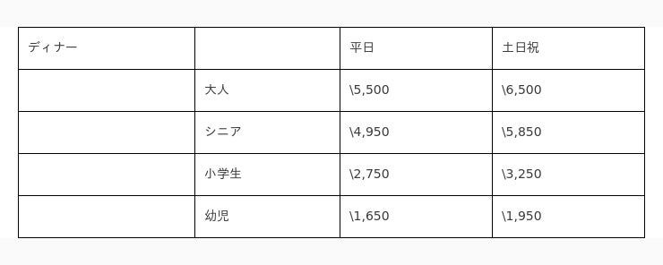 ※クリスマス・年末年始・その他イベント開催日などは料金が変更となります