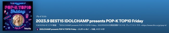 ラジオ番組「IDOL CHAMP presents POP-K TOP10 Friday」9月月間ランキング発表!MVPはV!上位15曲は「Spotify」の番組公式プレイリストにて公開