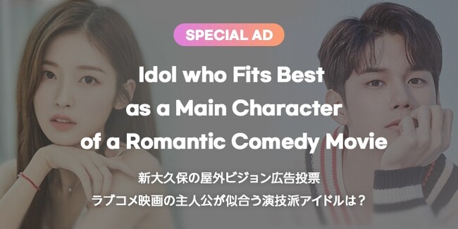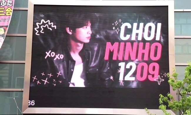 2023年9月4日(月)から9月10日(日)までの期間で開催した「ラブコメ映画の主人公が似合う演技派アイドルは?」の投票において1位に選ばれたSHINeeのミンホさんの応援広告が、新大久保のK-PLAZA 1号館の屋外ビジョンで上映中です。