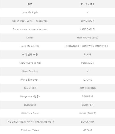 株式会社ゲームオン[本社:東京都渋谷区、代表取締役:李 一守(リ・イルス)]が運営しておりますK-POPアイドル応援アプリ『IDOL CHAMP』内の投票機能と連動した日本国内初のラジオ番組「IDOL CHAMP presents POP-K TOP10 Friday」(TOKYO FM)の9月総合投票数でVの「Love Me Again」が月間MVPを獲得しました。併せて上位15曲は「Spotify」の番組公式プレイリストにて公開しました。また、『IDOL CHAMP』内の投票にて、1位に選ばれたアーティストの応援広告を上映中です。