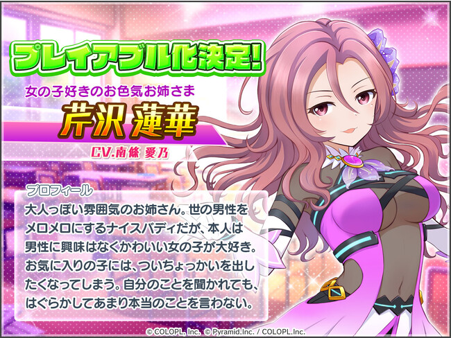 また、新イベントにて「天野 望(CV:東山 奈央)」と「芹沢 蓮華(CV:南條 愛乃)」が新たにプレイアブルキャラクターとして登場いたします。