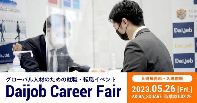 ビジネス・プロフェッショナル×バイリンガルのための転職・求人情報サイト「Daijob.com」を展開するヒューマングローバルタレント株式会社(本社:東京都新宿区、代表取締役:横川 友樹、以下「当社」)は、転職イベント「第48回Daijob Career Fair」を2023年5月26日(金)にAKIBA_SQUARE(東京都:秋葉原)で開催します。 (https://www.daijob.com/cfair/place/54)