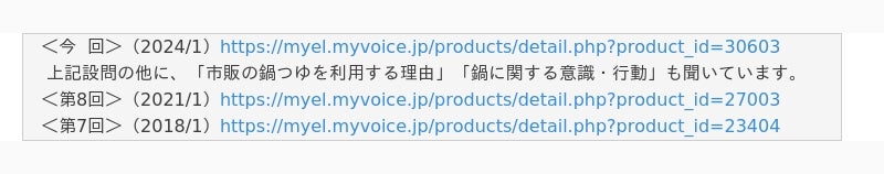 マイボイスコム株式会社(東京都千代田区、代表取締役社長:高井和久)は、9回目となる『なべ料理』に関するインターネット調査を2024年1月1日〜5日に実施しました。