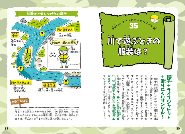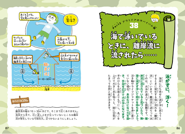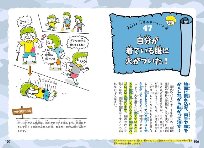 もしも着ている服に火がついたら?海で泳いでいる時に流されたら?川遊びで気を付けたい場所は?いろいろな危険の対処法を子どもたちに分かりやすく伝える『大人も知らない? サバイバル防災事典』デーリー東北掲載