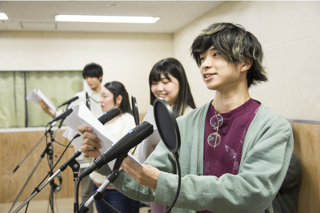 様々なインターンシップで現場経験を重視し、アフレコブース、ナレーションブースなどを完備しています。