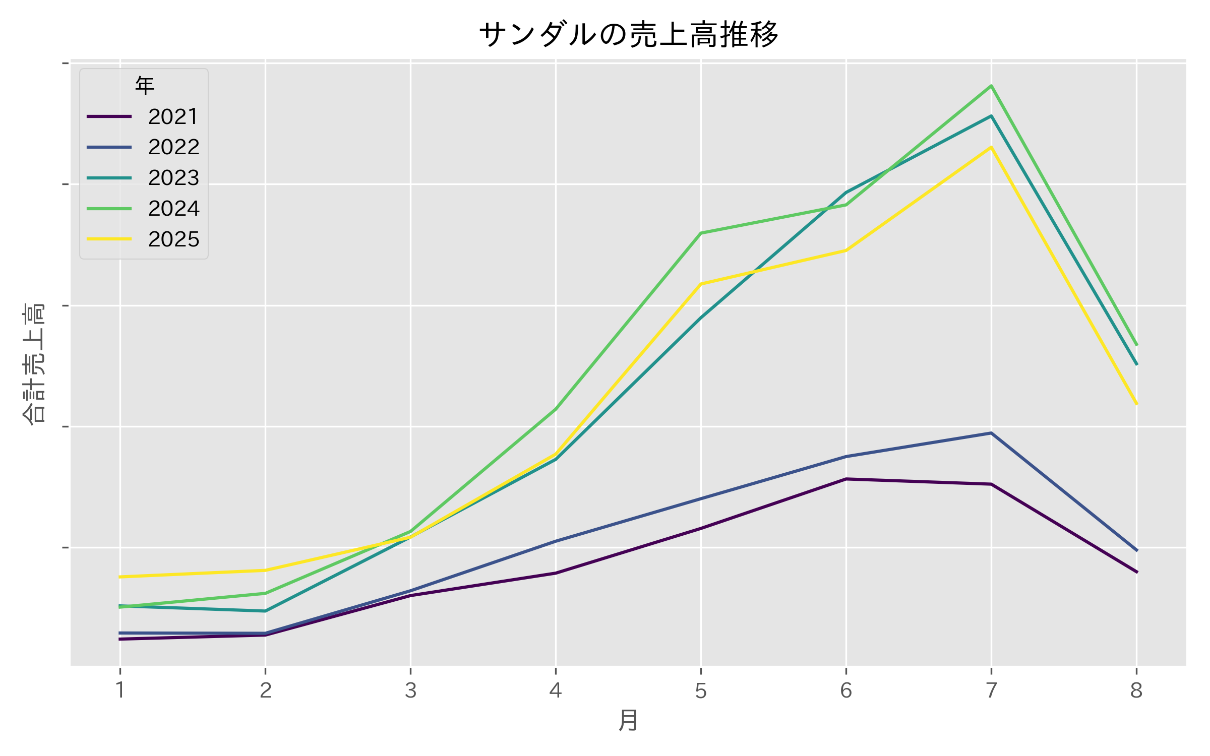 同時期にスニーカーの購買も同様の伸びを示しており、外出機会の増加に伴う購買意欲の回復が、サンダル市場全体の拡大に寄与している可能性が推察されます。
