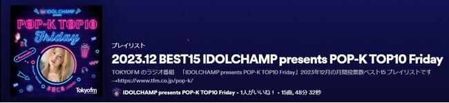 ラジオ番組「IDOL CHAMP presents POP-K TOP10 Friday」12月月間ランキング発表!MVPはJUNGKOOK!上位15曲は「Spotify」番組公式プレイリストにて公開