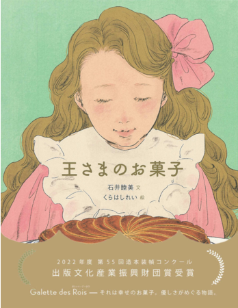 『王さまのお菓子』(文・石井睦美 絵・くらはしれい)は、2022年度 第55回造本装幀コンクールで出版文化産業振興財団賞を受賞。第4回「親子で読んでほしい絵本大賞」(JPIC読書アドバイザークラブ主催)では第4位に入賞しました。本書の帯は、頭のサイズに合わせて切って、テープで止めると王冠になる特別仕様で、本を読んだあとは王様や女王様になって楽しむことができます。多くの読者から愛される絵本です。