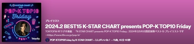 株式会社ゲームオン[本社:東京都千代田区、代表取締役:李 一守(リ・イルス)]が運営しておりますK-POPアイドル応援アプリ『IDOL CHAMP』内の投票機能と連動した日本国内初のラジオ番組「K-STAR CHART presents POP-K TOP10 Friday」(TOKYO FM)の2月月間チャートでUMI, V (BTS)の「wherever u r (ft. V of BTS)」が2カ月連続で月間MVPを獲得し、併せて上位15曲を「Spotify」の番組公式プレイリストにて公開しました。