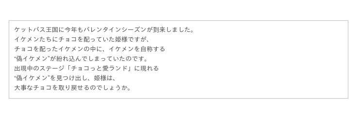 ンタインアンジェ」と「ウェア・バレンタインカレット」などがラインナップします。こちらもあわせてお楽しみください。姫様たちと一緒に『ケリ姫スイーツ』でバレンタインを“美味しく”お楽しみください。