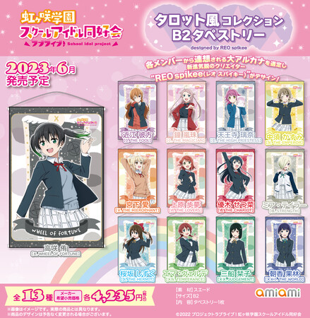 フィギュア&ホビー通販大手の「あみあみ」を運営する、大網株式会社(本社・東京都文京区)は、『ラブライブ!虹ヶ咲学園スクールアイドル同好会』より「タロット風コレクション」シリーズの「トレーディングカード」「A4クリアファイル」「B2タペストリー」を、2023年6月予定で発売いたします。