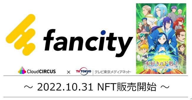 株式会社テレビ東京メディアネット(本社:東京都港区、代表取締役社長:加増良弘)は、クラウドサーカス株式会社(本社:東京都新宿区、代表取締役:北村健一)との共同事業による“アニメ特化型”NFTマーケットプレイス『fancity(ファンシティ)』を10月31日に開設いたします。