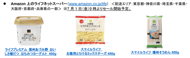 Amazon フレッシュでは、野菜、果物、冷凍食品、惣菜、レトルト食品、日用品などの対象商品が最大 20%OFF※、Amazon 上のバローネットスーパーでは、チルド食品や麺類、調味料などの対象商品が 20%OFF※、Amazon 上の成城石井ネットスーパーでは、成城石井のバイヤーが厳選し直輸入した 50 点以上の高品質なボルドー、ブルゴーニュワインが 10%OFF※になるセールをそれぞれ開催しています。また、Amazon 上のライフネットスーパーでは、旬の果物や野菜、ライフが厳選したプライベート商品などの対象商品が 30%OFF※となるセールを 7月 1 日(金)9時より開始します。