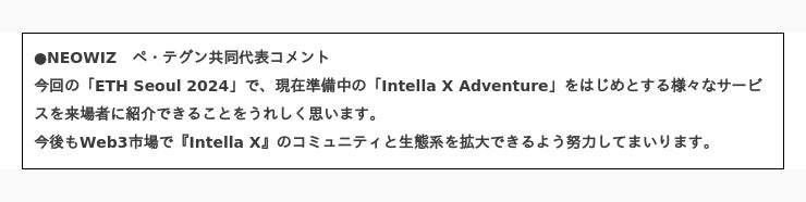 【NEOWIZ プレスリリース】NEOWIZが『ETH SEOUL2024』の会場スポンサーにオープニングセレモニー及び『Intella X』ブース運営で参画