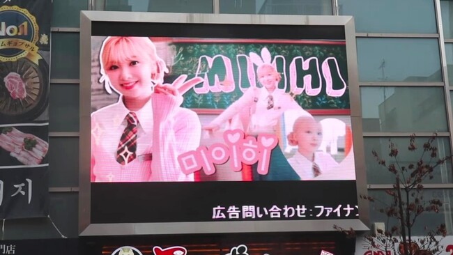 新大久保屋外ビジョンでは『IDOL CHAMP』ファン投票1位の「NiziU」MIIHIの応援広告を上映