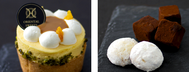 ピーチメルバ / カーネーションのケーキ / メロンショートケーキ / ひとくちティラミス / 和栗のモンブラン / オペラ / ポルボロン / プリンタルト / ブルーベリーのタルト / 抹茶のシャルロット / オリエンタルプリンのブリュレ / パイシュー / 生チョコ / ヴェリーヌ / キャラメルオレンジのタルト / レモンケーキ / カラフル飴クッキー / カップケーキ / わらび餅 / 出来立て葛切り / あんバターパイ / フルーツ 等