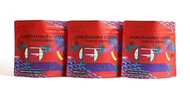 ▲定番ブレンド3種セット 税込2,580円/猿田彦フレンチ100g、大吉ブレンド100g、恵比寿シティ100g