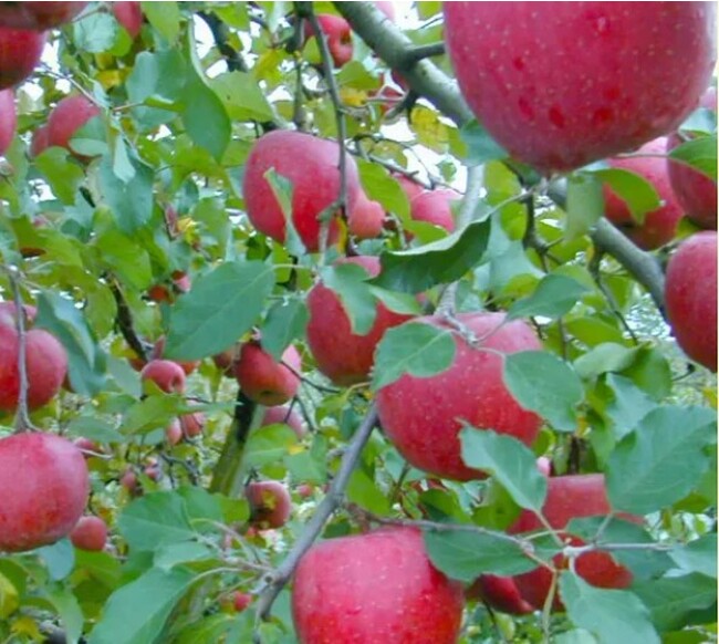 蜜がたっぷり入る特長を持ち小玉傾向のリンゴ「高徳」。