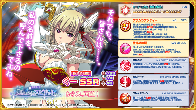 本日から始まる「囚われのスピリットガチャVol.1」では、新たに「【眠れる戦姫】くー」が登場!