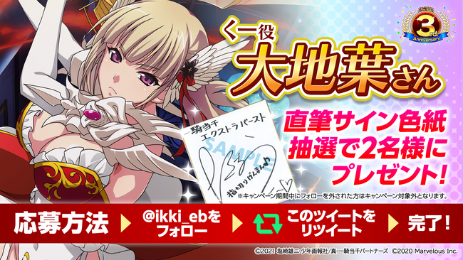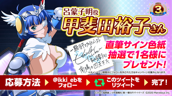 株式会社マーベラス(代表取締役社長 佐藤澄宣/所在地:東京都品川区)は、原作が20周年を迎えた大人気シリーズ「一騎当千」のAndroid/iOS向け新作ゲームアプリ『一騎当千エクストラバースト』で、2023年5月25日のサービス開始3周年を記念して、3周年の後夜祭イベントを開催いたします。