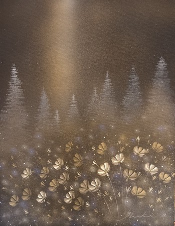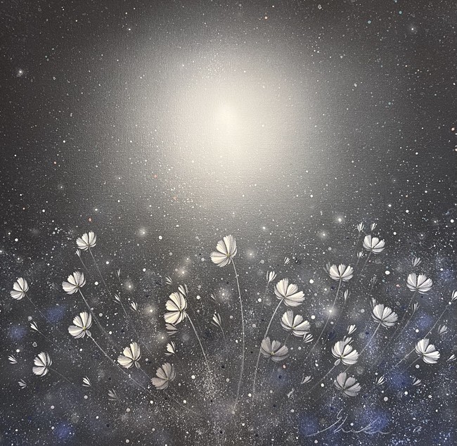 Cosmos(宇宙)をモチーフに神秘的な色彩と無限大のメッセージを画中に展開しつつ、壮大なテーマの中に佇む静寂なる美しい世界は「和」さえも感じさせてくれます。