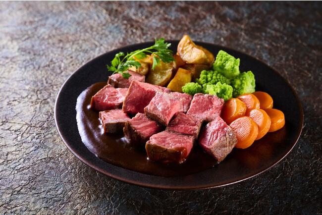 牛ほほ肉をホテル自家製シチューソースで煮込み、温野菜を添えました。