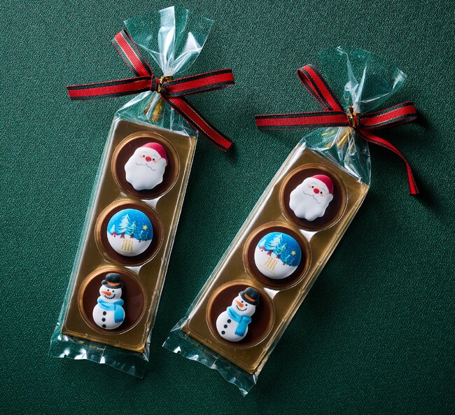 サンタクロース・雪景色・雪だるまの3種の絵柄のチョコレートのセットです。