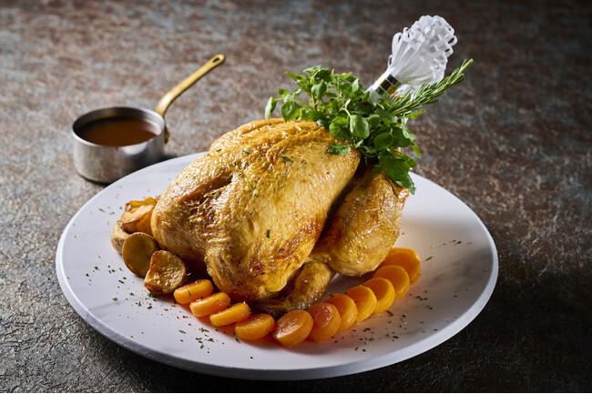タイムやオレンジの香りを効かせ、柔らかくジューシーに焼き上げた鶏もも肉を使用した定番のクリスマスチキンです。