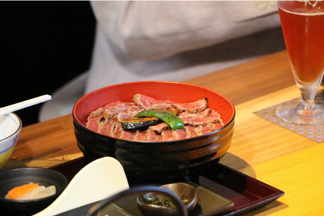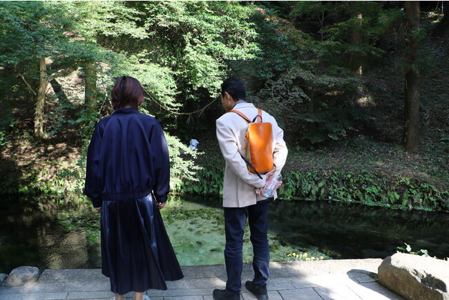 昼食は、阿蘇の特産和牛・あか牛の名店「白水乃蔵」で、あか牛のひつまぶしを味わいます。ワサビを乗せたり、たっぷり出汁をかけたり…三度楽しめる絶品料理に大満足の2人です。