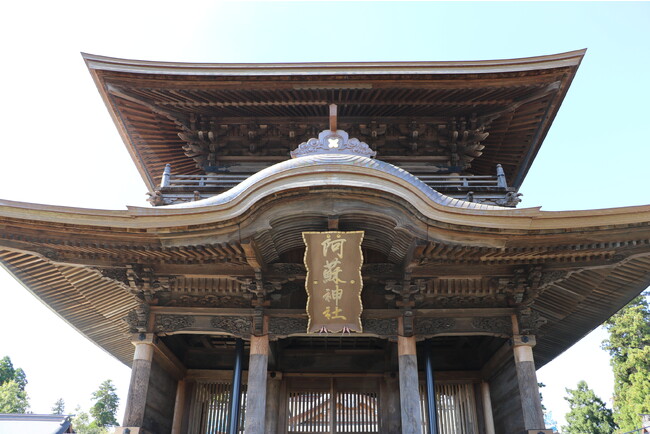 そして、参道を進み神社に到着。平成28年の熊本地震では楼門や拝殿などが倒壊する被害を受けましたが、徐々に再建が進んでいます。特に楼門は元の素材を可能な限り使用し、かつ耐震補強も行う難工事を実施。日本が誇る匠の技術に圧倒されます。