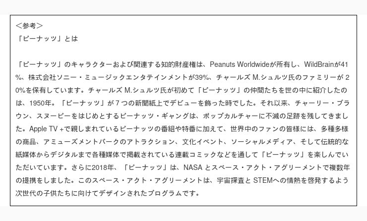 ・日本のスヌーピー公式Facebook ページ「Snoopy Japan」 https://www.facebook.com/SnoopyJapan