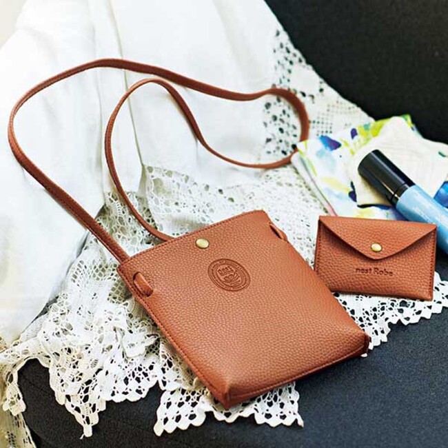 お財布など、外出に必要最低限のものをすっきり収納。便利な内側のポケットには、スマホやセットのカードケースがぴったり収まります。