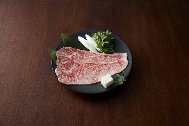 お肉の部位は希少な特選リブロースとなります。お肉の種類は〈山形黒毛和牛〉と〈松阪牛〉の2種類をご用意しています。「山形黒毛和牛焼きすき」は、山形黒毛和牛2枚(120g)税込5,280円、「松阪牛焼きすき」は、松阪牛2枚(120g)税込み7,480円です。また、追加でお肉の注文も承っています。追加の場合は、山形黒毛和牛1枚で税込み2,200円、松阪牛1枚で税込み3,300円です。(1枚あたり60g)ディナーの時間帯のみのご提供となります。単品の追加メニューとなりますので通常のコースメニューを一緒にご注文ください。
