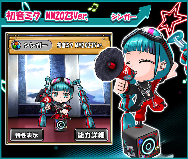 本コラボでは、『初音ミク「マジカルミライ 2023」』のテーマ“ヒーロー”をイメージした新コラボメンバー「初音ミク MM2023Ver.」や新コラボドレス、Ayase氏楽曲のテーマソング『「HERO」 /Ayase feat. 初音ミク』が流れる新コラボステージが登場するなど、盛りだくさんとなっております。その他にも、過去に登場したコラボステージが数多く登場します。どうぞお楽しみください。