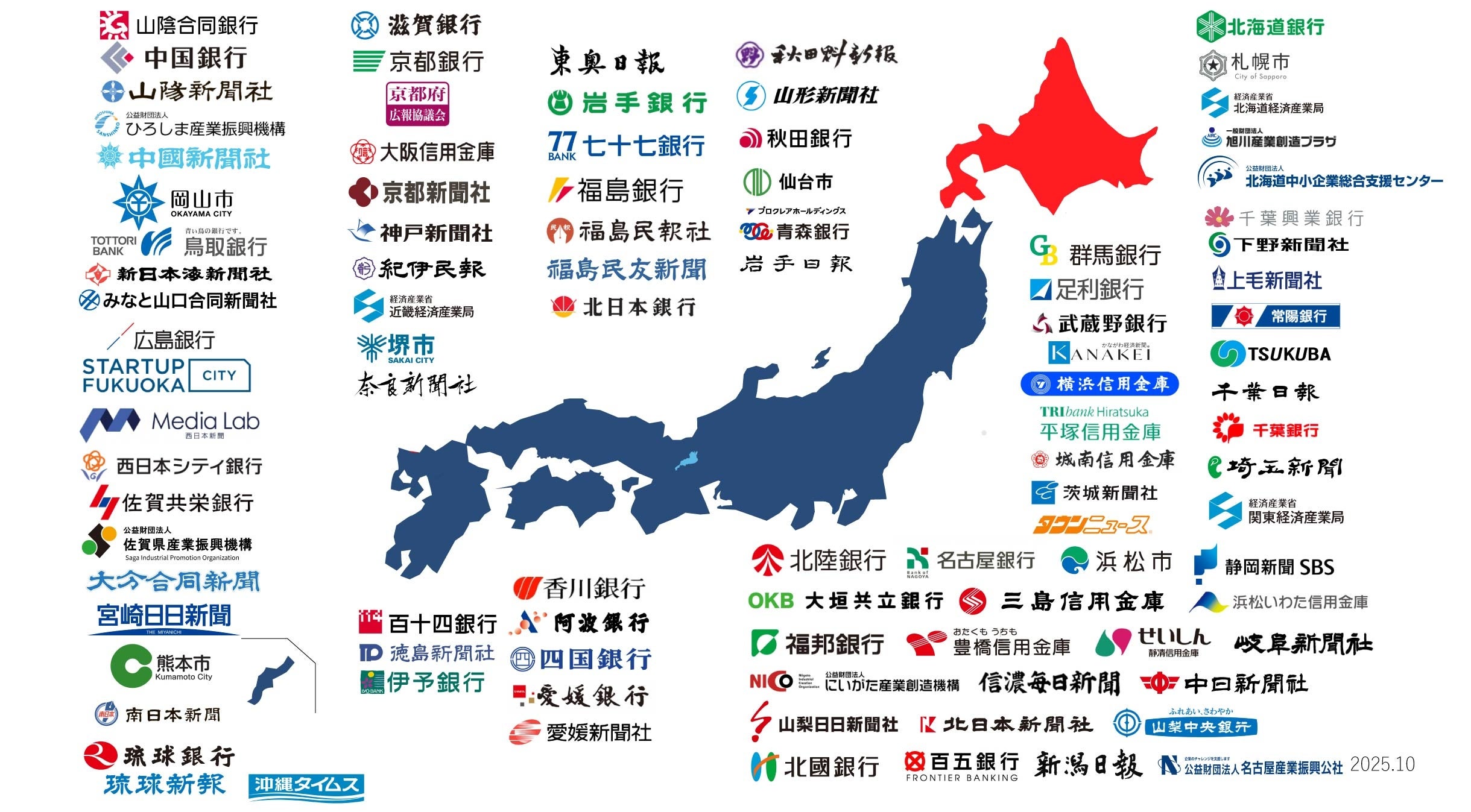 当社が運営するプレスリリース配信サービス「PR TIMES」は、2025年8月時点で利用企業数11万6000社を超え、スタートアップから大企業、自治体などの行政機関や、個人事業主まで多くの方にご活用をいただいております。「行動者発の情報が、人の心を揺さぶる時代へ」をミッションに掲げる当社は、新しい挑戦に向かって行動する地域事業者への情報発信の支援を続けています。当社は、地域の事業者が価値ある情報を自ら発信し、商品・サービス、事業にかける想いが全国に伝わることで、事業拡大に繋がる関係性創出にも寄与できると考えています。2017年からは地方地域の事業者がPRを活用する機会創出を目指し、各地域の金融機関やメディア、自治体と協力して、無償プログラム提供をはじめとする支援を続けています。2024年にその対象地域は47都道府県に広がりました。そして、この度の連携協定締結により、地域の情報流通のための提携は地方金融機関43例(35行・8信金)、地方メディア37社、官公庁・自治体等1道1府3県9市4機関、合計98例(47都道府県)となりました。
