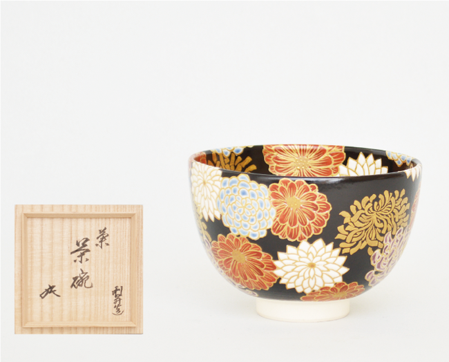 仁清黒菊茶碗 坐忘斎宗匠御箱書