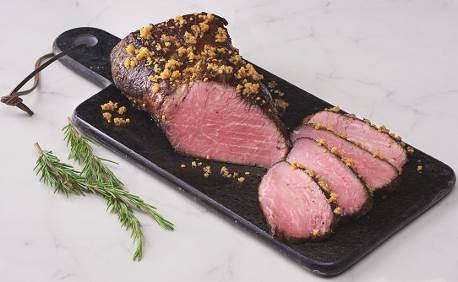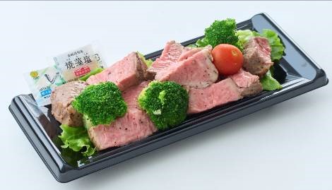 1.希少部位トモサンカクの贅沢しっとりローストビーフパヴェ仕立て(100g) 918円 希少部位トモサンカクをブロック状にカットした柔らかくてジューシーなローストビーフ。ほっぺタウンの惣菜人気NO.1メニュー。
