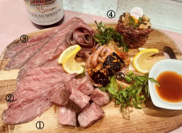4.ローストビーフのアリュメット仕立て〜ユッケ風〜(100g) 697円 ピリ辛でお酒のおつまみにもご飯にもピッタリです。