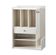 キャスター付きのランドセルラック。高すぎず、低すぎず、お子様一人で整理整頓の習慣が身につきます。ランドセルだけでなく、教科書などがしまえる本棚や小物がしまえる引き出しなどの収納スペースがあり、ランドセルと収納スペースを近くにすることで、出し入れの動作を小さくする設計になっています。