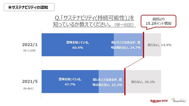 ■「サステナビリティ」の認知率が約8割、昨年5月から15.2ポイント増加