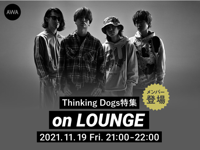 AWA株式会社(本社:東京都港区、代表取締役CEO:冨樫晃己)が運営する、サブスクリプション型(定額制)音楽ストリーミングサービス「AWA(アワ)」は、2021年11月19日(金) 21:00〜22:00の1時間に渡り、オンライン空間「LOUNGE」で、Thinkiing Dogsのイベントを開催いたします。