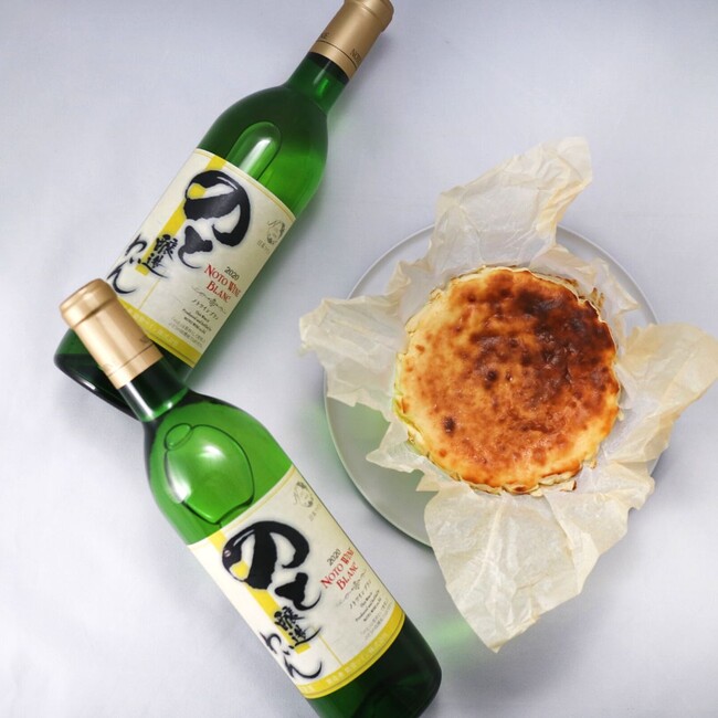 石川県のワイナリーで造られた「ノトワインブラン」を使った素材にこだわったバスクチーズケーキ。