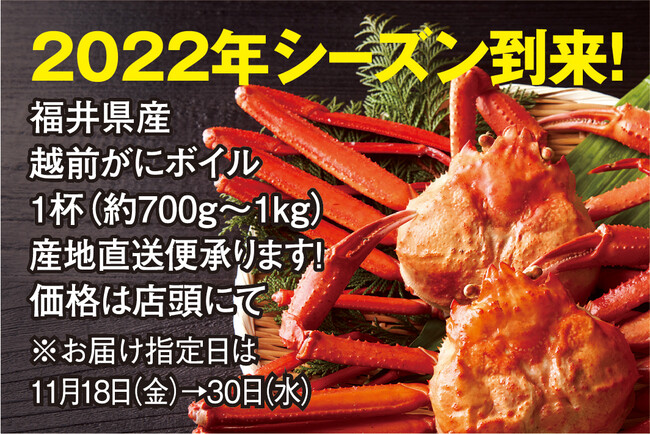 11/6(日)はカニ漁解禁日!カニのベストシーズンが到来した北陸の“旬”や“ソウルフード”を楽しむ物産展を開催!@松坂屋名古屋