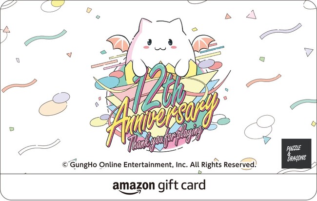 パズルRPG『パズル&ドラゴンズ(通称、パズドラ)』は、2024年2月20日(火)にサービス開始12周年を迎えました。これを記念して、「パズドラ12周年記念オリジナルAmazonギフトカード(10万円分)」が当たる「パズドラ12周年記念!プレゼントキャンペーン!」を実施いたします。