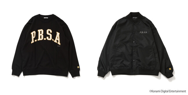 プロ野球スピリッツA(PROFESSIONAL BASEBALL SPRITS A)の頭文字を取った「P.B.S.A」をロゴに落とし込み、カレッジ&アメカジテイストに仕上げています。袖に入ったキャラクターの調子くんもポイント。