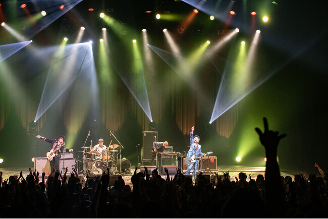 日本武道館と昨年秋のツアーと今回のツアーにおいて、「それじゃあ新しいやつを」というHARRYの紹介から演奏されてきた新曲、「曇った空に光放ち」と「ミッドナイト・アワー」の2曲は、この日も9曲目と10曲目でプレイされた。2019年にツアーを行い、18年ぶりに同じステージに立って以降、活動しているHARRYと蘭丸のJOY-POPSが、2020年と2022年に発表した楽曲である。