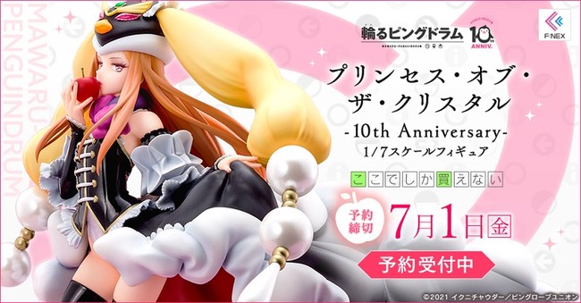 フリュー株式会社(本社:東京都渋谷区、代表取締役社長:三嶋隆、以下フリュー)は、高品質ホビーブランド「F:NEX(フェネクス)」の新商品として、TVアニメ「輪るピングドラム」より『プリンセス・オブ・ザ・クリスタル -10th Anniversary- 1/7スケールフィギュア』の発売を決定いたしました。本日4月29日(金・祝)より、フリューが運営するホビーECサイト『F:NEX』(URL:https://fnex.jp/)にて予約が可能となります。