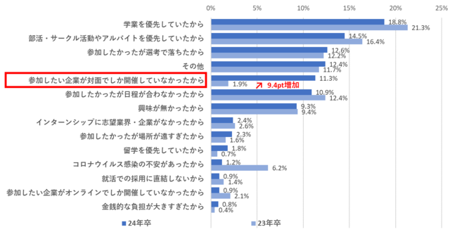 参加しなかった理由では「参加したい企業が対面でしか開催していなかったから」が増加【図3】