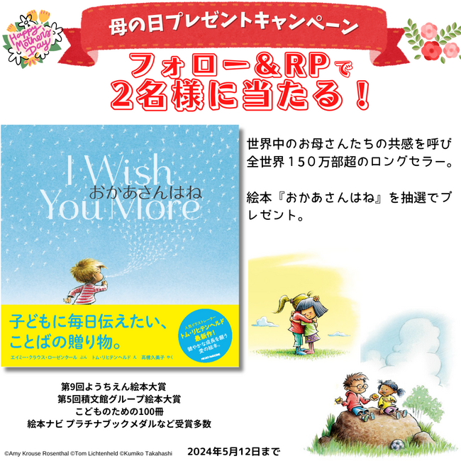 世界中のお母さんたちの共感を呼んだ、全世界累計150万部超のロングセラー絵本『おかあさんはね』母の日プレゼントキャンペーンを開催いたします!